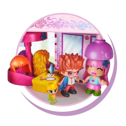Cada piso es un viaje único para poder jugar: las puertas se abren solas y al girar la figura Pinypon encontrarás una tienda con faldas y un espejo mágico para probar diferentes outfits.