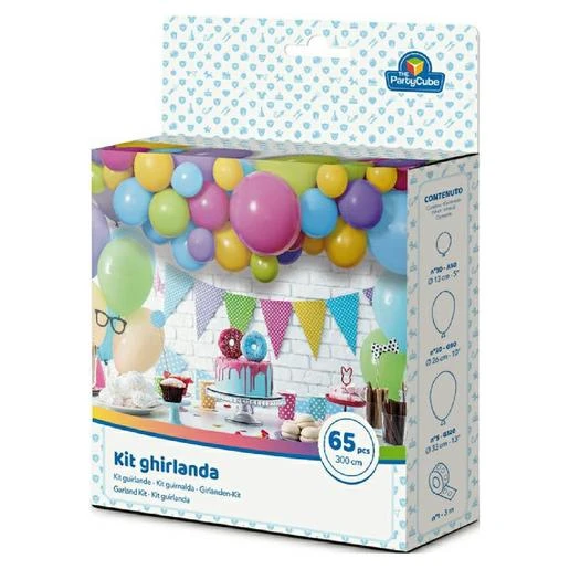 Esta caja contiene 65 piezas para que montes la guirnalda para tu fiesta.