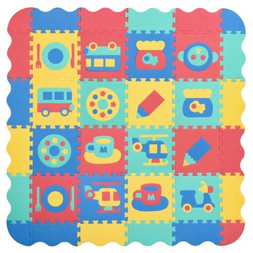 Ideal para tener en la habitación infantil, sala de juegos o en la sala de estar. Las 16 piezas principales cuadradas cuentas con diferentes siluetas de objetos que les encantarán y despertarán su curiosidad para jugar con ellas.