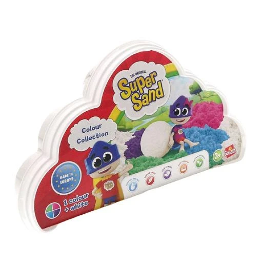 Con la nube de colores de Super Sand tendrás dos colores en uno: blanco y morado, blanco y rosa, blanco y azul o blanco y verde. Cuantos más colores de arena tengas, creaciones más chulas podrás hacer.