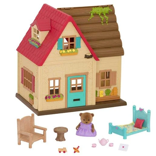 Este juego de Li’l Woodzeez incluye a Hazel Healthnuggle, un simpático personaje animal de Honeysuckle Hollow. ¡Esta figura de oso viene con un pequeño atuendo, que puedes combinar con otros personajes! Dentro de la casa hay muchos muebles, por lo que puede sentarse en la silla, comer en la mesa y echar la siesta en su propia cama. ¡Incluso hay un juego de té y algunos juguetes en miniatura para entretener a los invitados! Invita a todos los Li’l Woodzeez a pasar una noche en Sunny Acres Country House: ¡hay espacio para todos!